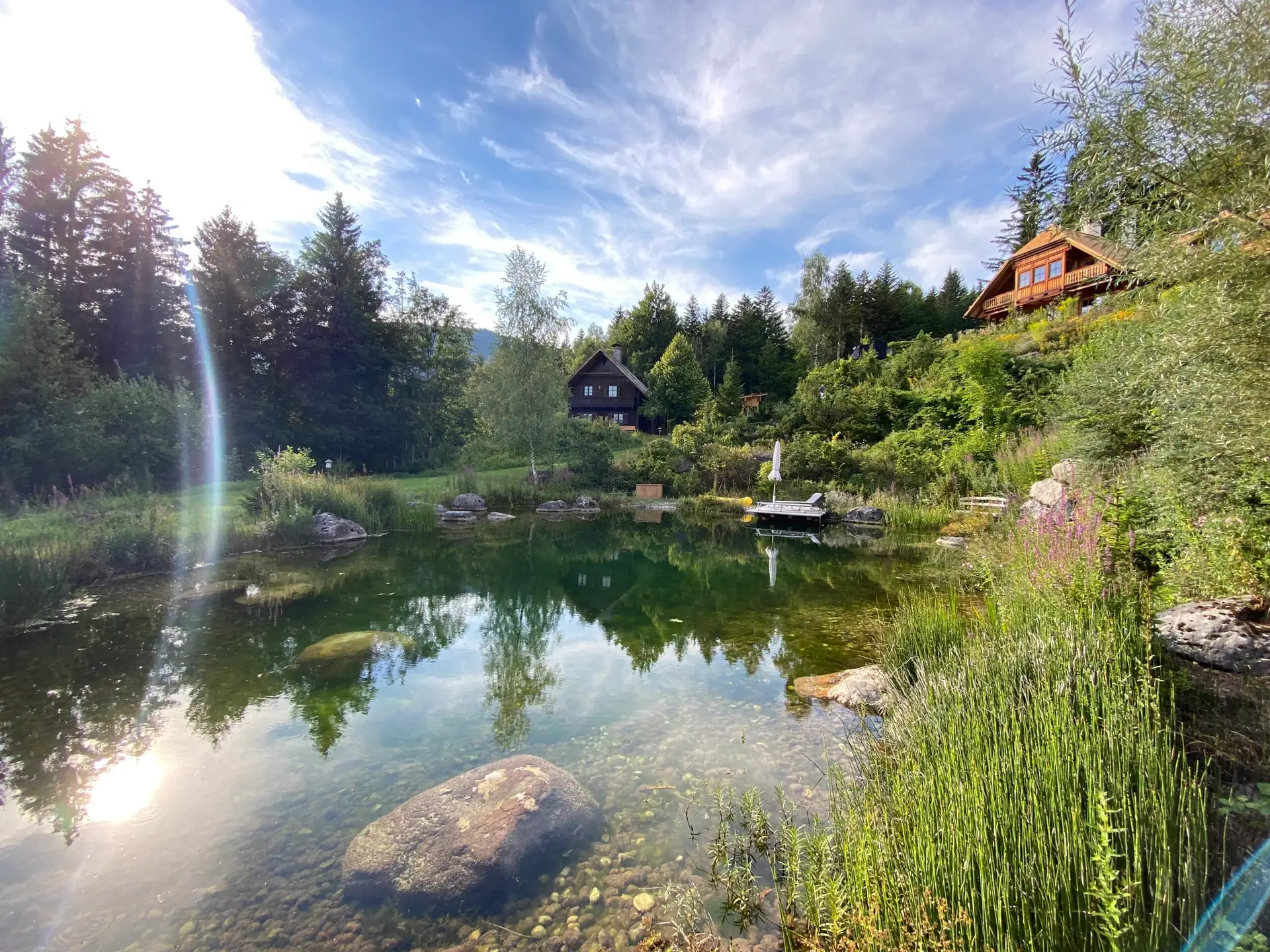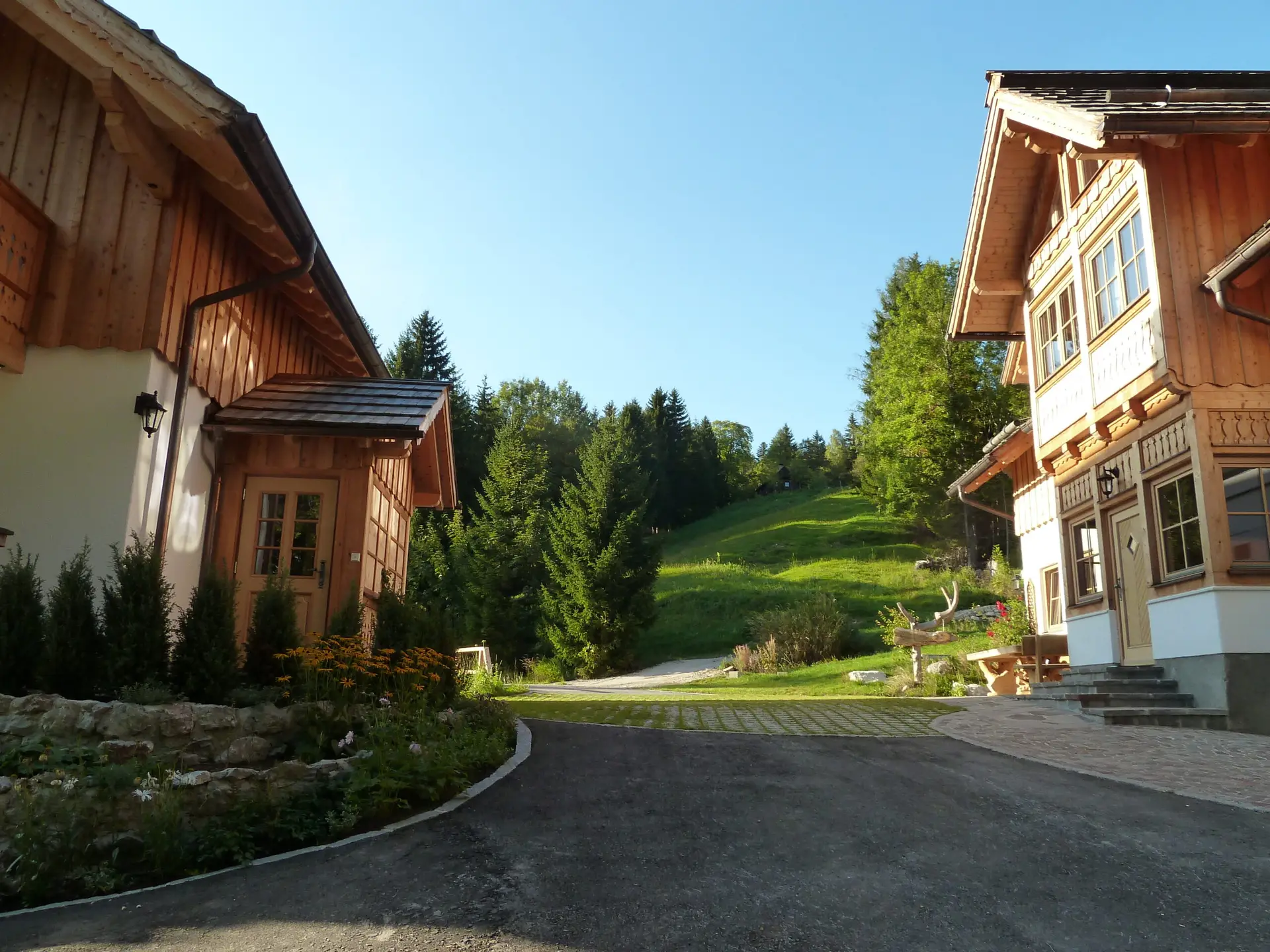 Eingebettet in duftende Almblumenwiesen liegen unsere Häuser im ländlichen Stil. Wir haben bewusst auf natürliche Baumaterialien wie Ziegel und Holz gesetzt, um eine Atmosphäre zu schaffen, in der Natur- und kosmische Kräfte nicht abgeschirmt werden.